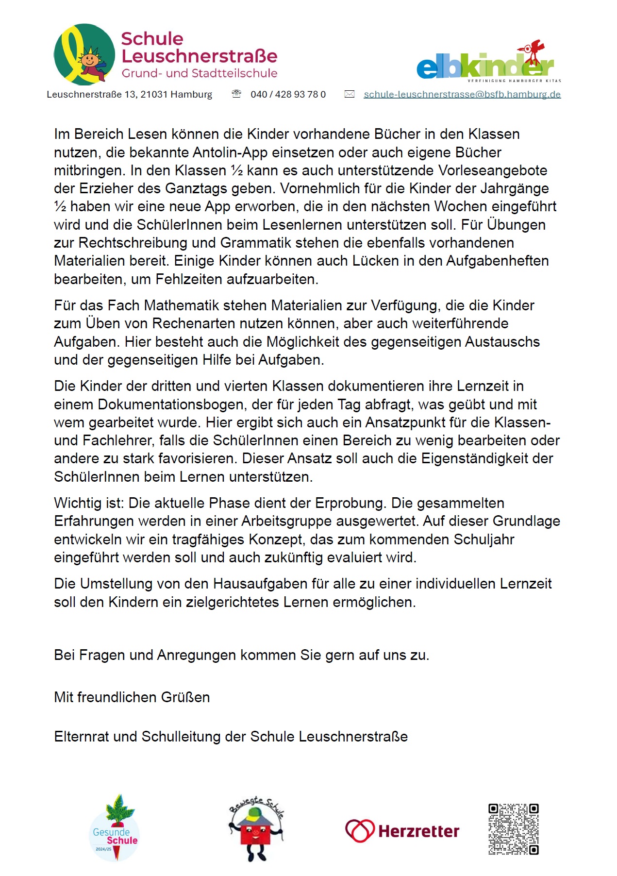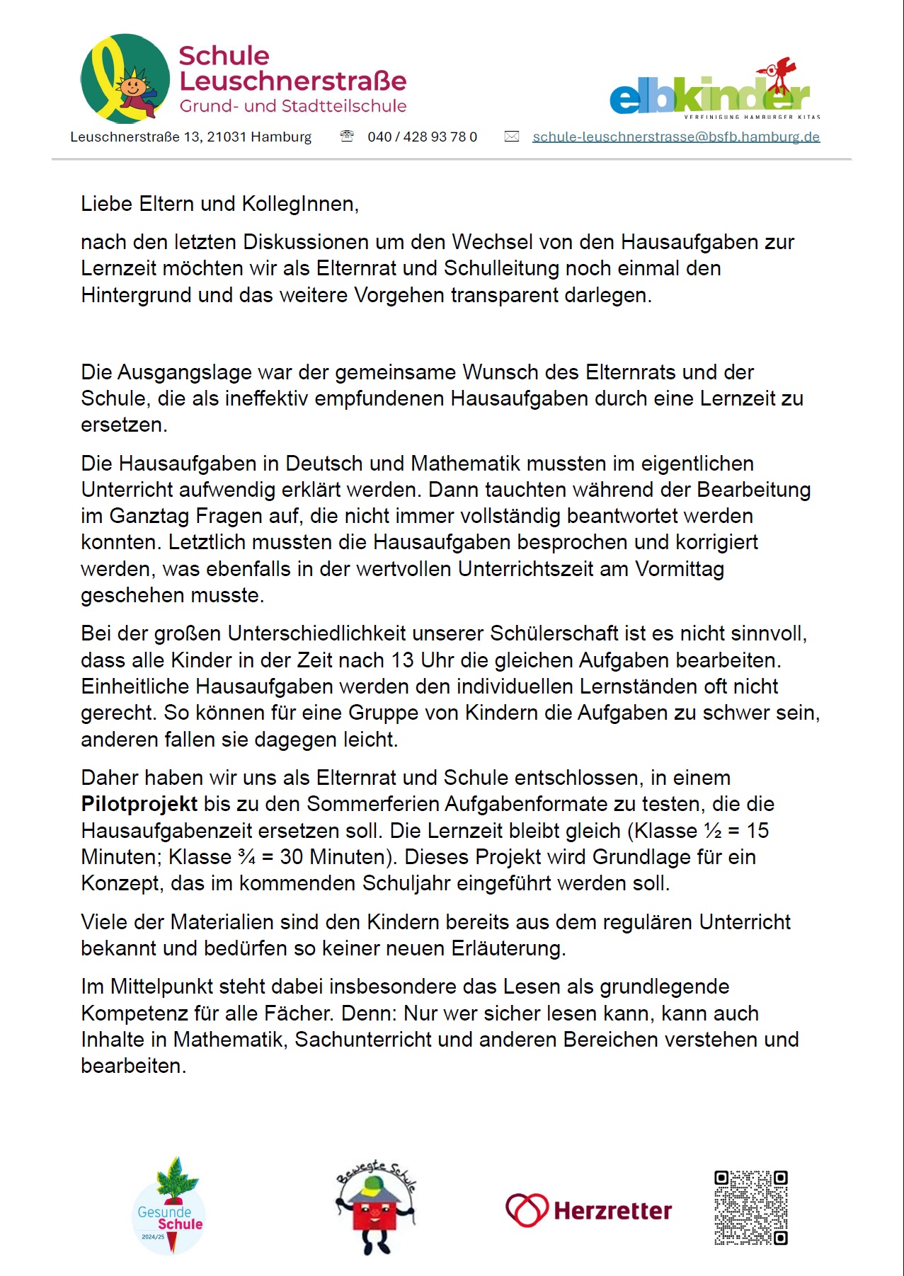 Bergedorf bekommt eine neue Langformschule. Aus der Grundschule Leuschnerstraße und der neugegründeten Stadtteilschule wird die Schule Leuschnerstraße (Grund- und Stadtteilschule).