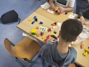 Alle Kinder konnten frei zwischen den Klassenräumen wechseln und die verschiedenen Stationen ausprobieren. Von Zahlenspielen wie „Triff die Zehn“ oder „Von 13 bis 0“ über Logik- und Kombinatorikaufgaben, Geometrie, Wahrscheinlichkeiten und Fermi-Fragen bis hin zu beliebten Klassikern wie Ubongo, Türme von Hanoi, Geheimcodes oder dem Somawürfel – für jede Jahrgangsstufe war etwas Passendes dabei.